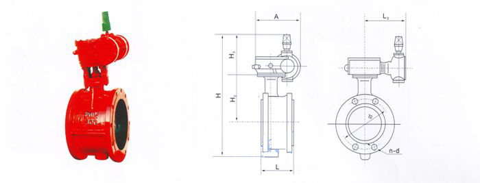 通徑DN | L | H | H2 | H3 | A | B | Φ | n-d及TH | |||||||